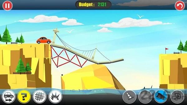 喜欢神奇的建筑学吗?看到别人造的那么多厉害的大桥自己是不是也想尝试一下呢?那就来这个游戏里体验一下吧!在这个游戏中你的目的很简单,就是在各种地形当中建造出完美的大桥,能够让不同的车辆成功的通过达到对岸就可以了!发挥你的想象力创造出属于你的桥梁吧!
