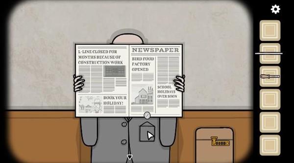 9、去到海报旁边的照相馆,装上把手,拉开帘子,获得报纸。把报纸拿给坐在长椅上的男人,在他看报纸的时候点击他右边的口袋,获得硬币。